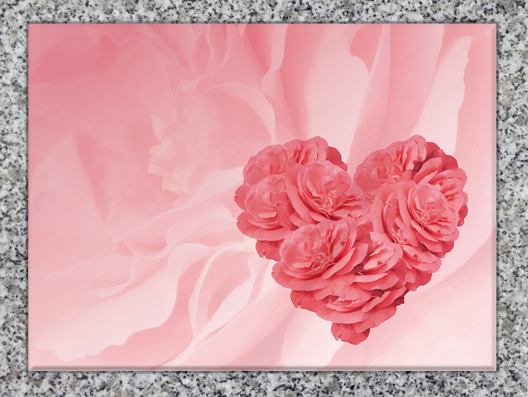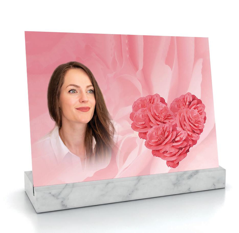 • Personnalisation : texte, photo, mise en page sur décor cœur