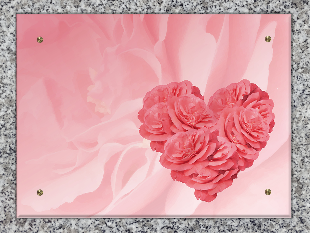 La plaque funéraire en verre « Un coeur posé sur le temps » symbolise un amour qui traverse les années et demeure dans la mémoire.