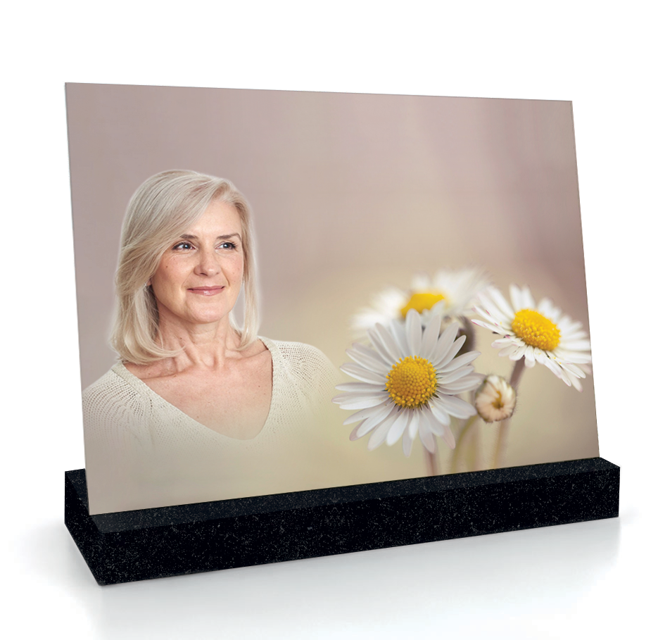 Rendez hommage à vos proches avec une plaque funéraire élégante et unique. Personnalisez-la facilement avec photo et texte. Fabrication française, qualité durable, impression haute définition.
