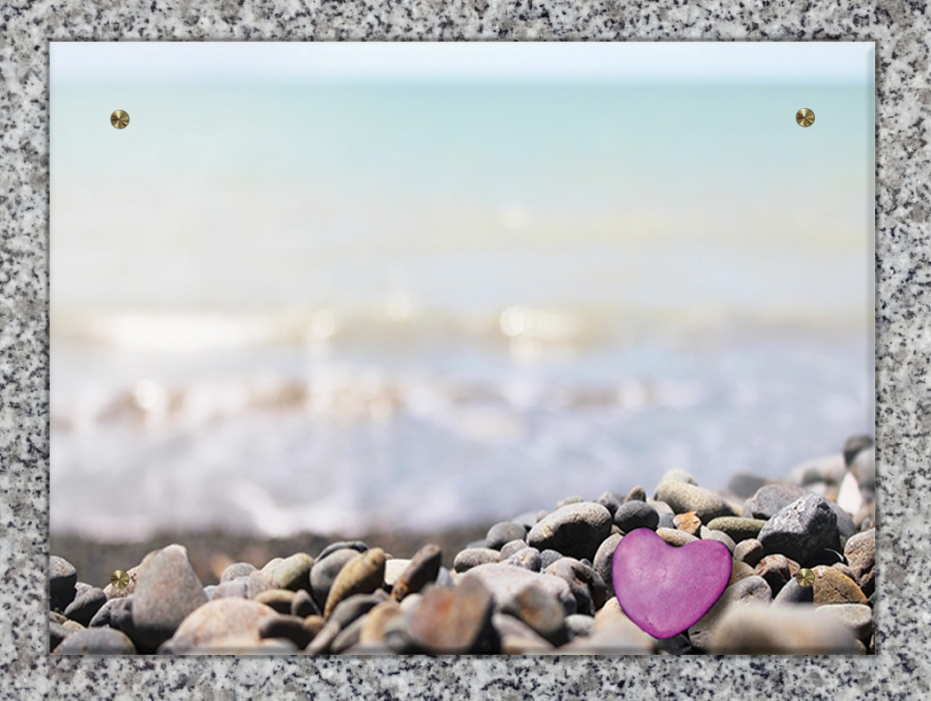 La plaque funéraire en verre « Coeur d’écume » rend hommage à une personne qui aimait la mer, les vagues et l’horizon marin.