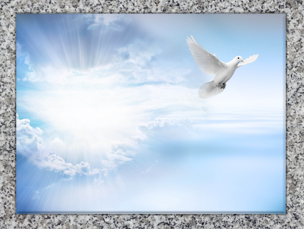 La plaque funéraire en verre « Vers la lumière » symbolise le passage vers la paix et la sérénité, avec un décor spirituel lumineux.