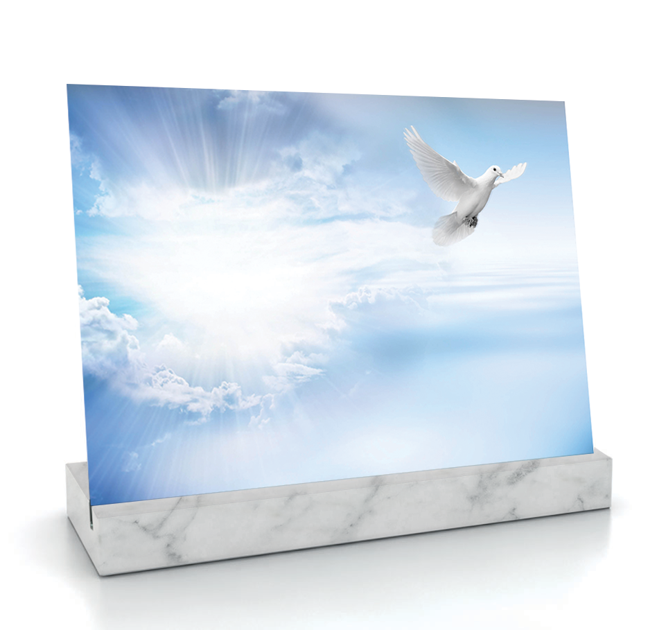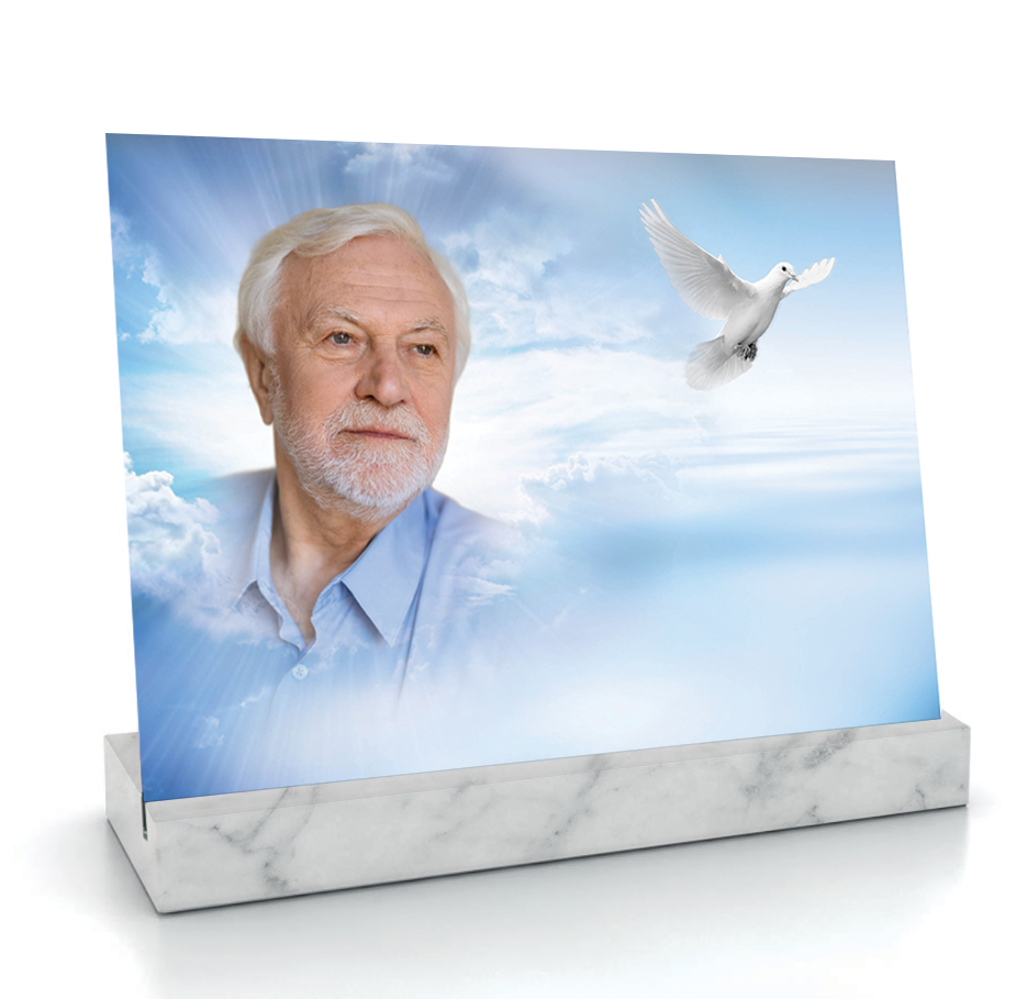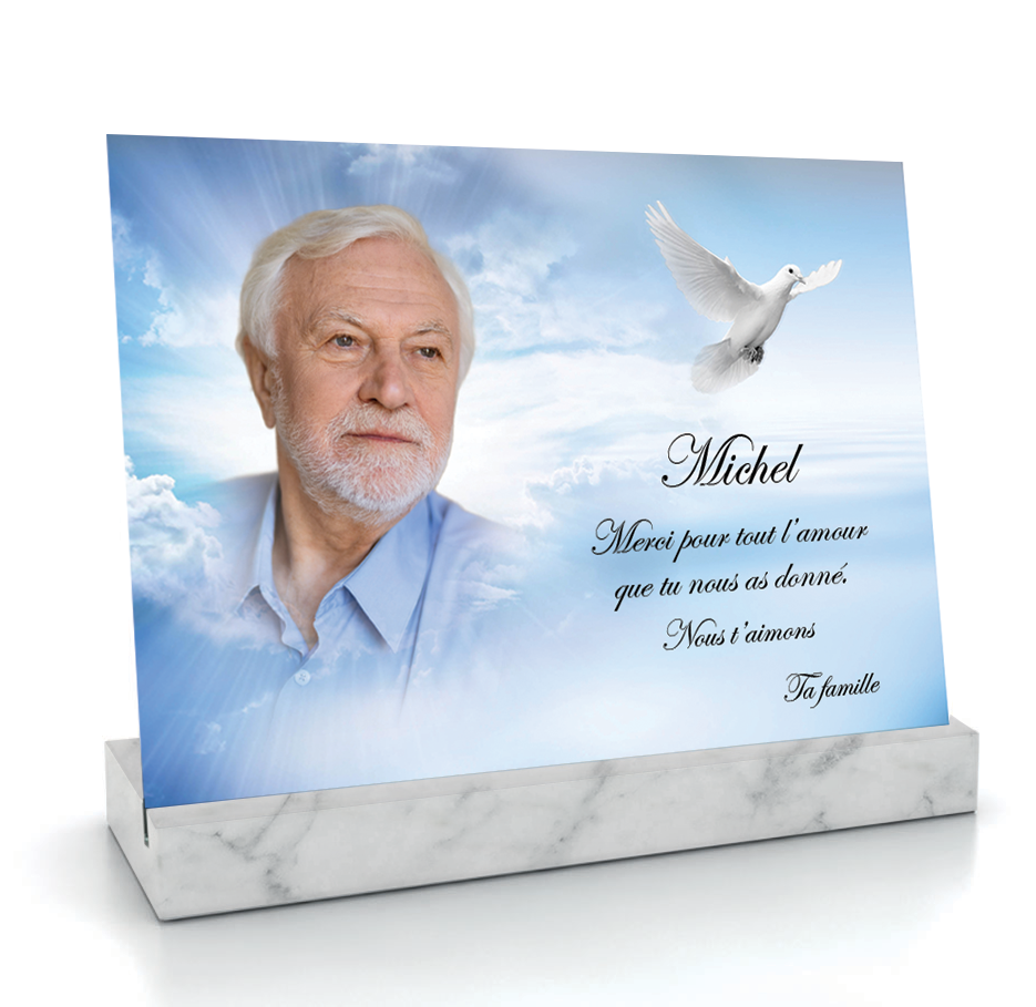 Idéale pour un hommage empreint d’espérance, elle se personnalise avec votre texte et votre photo pour refléter la foi et la personnalité du défunt.